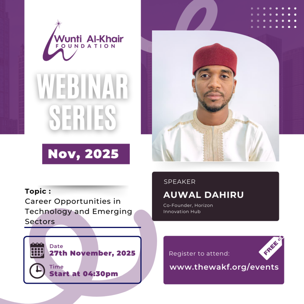 The Wunti Al-Khair Foundation (WAKF) has continued its commitment to youth empowerment and digital capacity-building with the successful hosting of its monthly webinar series, this edition themed “Career Opportunities in Technology and Emerging Sectors.” The virtual session, held over the weekend, brought together young professionals, students, and aspiring tech enthusiasts from across Nigeria.